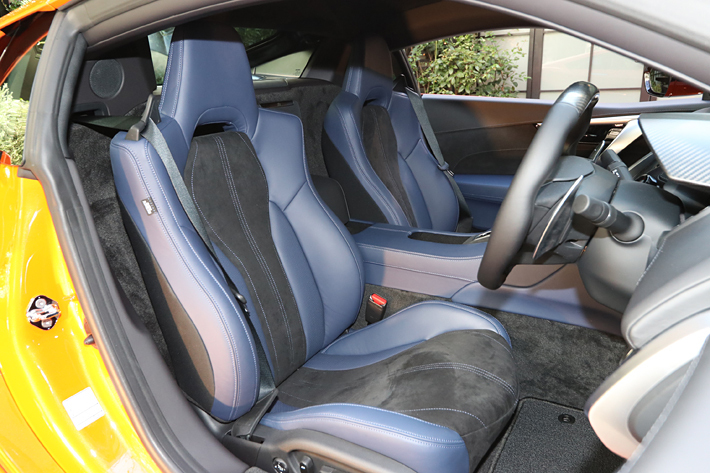これによりNSXの特徴であるワイド&ローなたたずまいに磨きをかけたほか、ボディカラーには存在感を放つ「サーマルオレンジ・パール」を追加すると同時に、インテリアカラーでも新色の「インディゴ」を設定した。