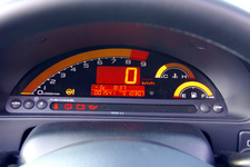運転席に座ってみる。実はメーターも変更点がある。液晶タイプのエンジン回転計のレッドゾーンが8000~9000回転になった。これは2.2Lエンジンの性格に合わせてのことだ。