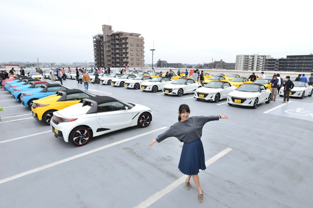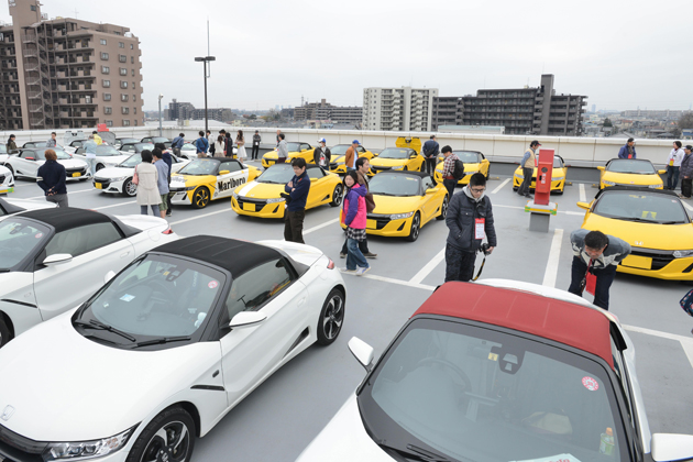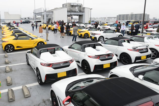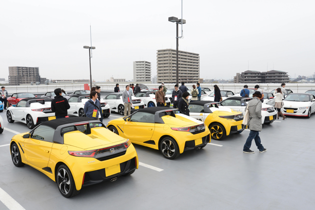 ボディカラー別に綺麗に整列したS660! 会場に集まった中では、白とイエローが人気を二分していた