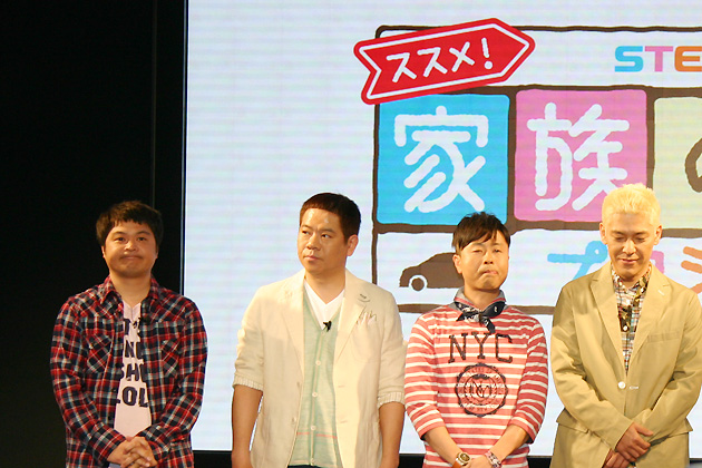 ホンダ ステップワゴン「ススメ!家族の冒険プロジェクト」よしもとパパ芸人 左から山崎邦正さん、FUJIWARA 原西孝幸さん、ロンドンブーツ1号2号 田村亮さん