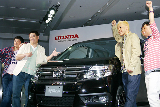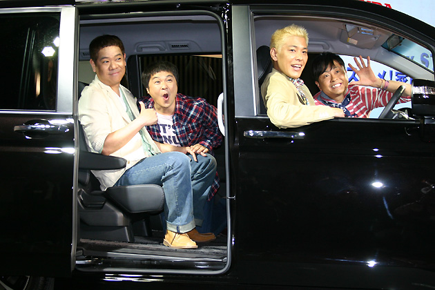 ホンダ ステップワゴン「ススメ!家族の冒険プロジェクト」よしもとパパ芸人 左から山崎邦正さん、FUJIWARA 原西孝幸さん、次長課長 河本準一さん、ロンドンブーツ1号2号 田村亮さん