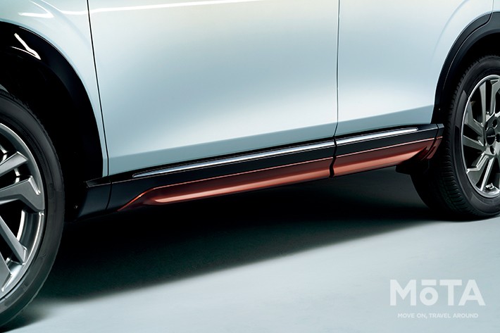 そしてフロント、リア、サイドには空力性能をも担保したエアロパーツを備えており、ヴェゼルの走りの良さをさらにアピールしている。