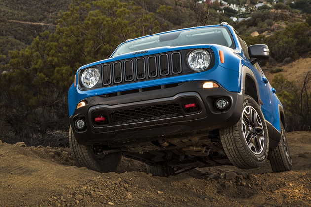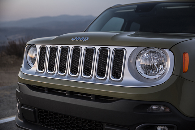 ジープ伝統の7スロットグリル、丸型ヘッドライトはしっかり継承される。もっといえば、「レネゲード」という名前がそうだ。