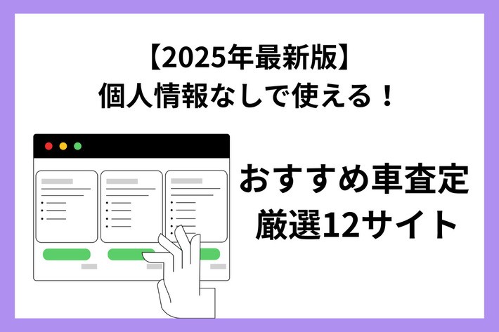 個人情報の登録なし!おすすめ車査定相場のシミュレーションサイト12選個人情報を登録せずに、車の査定額が知りたいという方は多いのではないでしょうか。しかし、通常の一括査定サイトでは、申込と同時に複数の買取業者から営業電話がかかって...