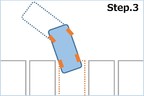 そしてハンドルを駐車スペースと反対側である右側にいっぱいに切ってゆっくり前進します。車両のリアを駐車スペースに斜めに向けるイメージです。