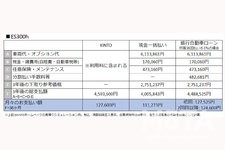 ちなみに現金一括だと、どちらも諸費用など込みで600万円を軽くオーバーなので、KINTOと比較するのは変だ。もちろんKINTOは、サブスクリプションなので、面倒な手続きや計算も必要なく、利用料金を毎月払えば利用できて、とてもスムーズである。