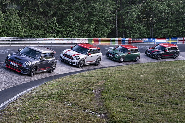 ジョン・クーパー・ワークスは現行型のミニシリーズにも設定されており、最も基本となる3ドアハッチバックボディを持つ「ミニ JCW」を筆頭に、オープンエアモータリングも楽しめる「ミニ コンバーチブル JCW」、使い勝手に優れるワゴンボディと特徴的な観音開きのリアドアを持つ「ミニ クラブマン JCW」、そしてどんな場所へも走って行けそうなアクティブさを併せ持つ「ミニ クロスオーバー JCW」の4タイプの中から選ぶことができる。