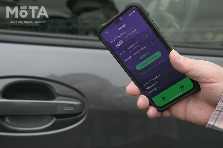 スマホで完結! スタッフとは対面せず貸出し・返却が可能だが、清掃などのサービスはレンタカー同様