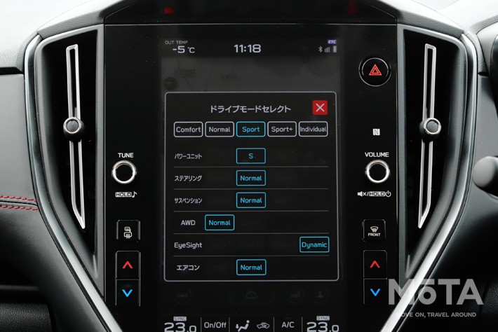 従来のスバル車ではナビとエアコンなどのインフォメーション機能が分かれていたが、センターインフォメーションディスプレイではどちらの操作もディスプレイ上のタッチで可能だ。