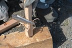 薪割りには斧やナタを使うというイメージが強いですが、「バトニング」というテクニックを使えばナイフでも薪割りが可能です。薪の上に刃を置き、ナイフの背を木材や別の薪で叩くという方法です。