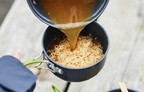 クッカーは大サイズの容量が1,000ml、小サイズの容量が400mlなので、ソロキャンプにぴったりの大きさ。やや浅型で底面が広いので安定しやすく、熱伝導効率が良いのがポイントです。また、開口部が大きいので、調理作業もしやすい形状となっています。