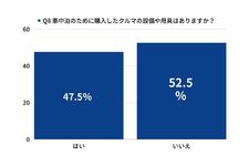 「車中泊のために購入したものがあるか」という質問に、約半数(47.5%)の人が「はい」と答えました。
