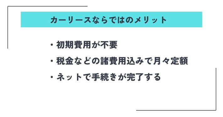 ここまでカーリースのデメリットについて紹介しましたが、もちろんカーリースにはならではのメリットもあります。