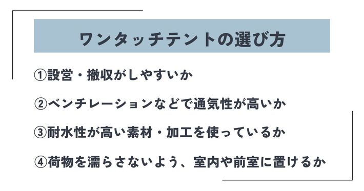 ワンタッチテントを買うときにチェックすべきポイントを解説します。