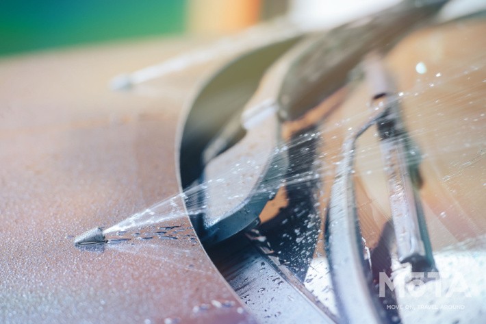 ウォッシャー液を使用するだけで、フロントガラスに撥水コーティングができるので、雨の日のドライブが快適になります。