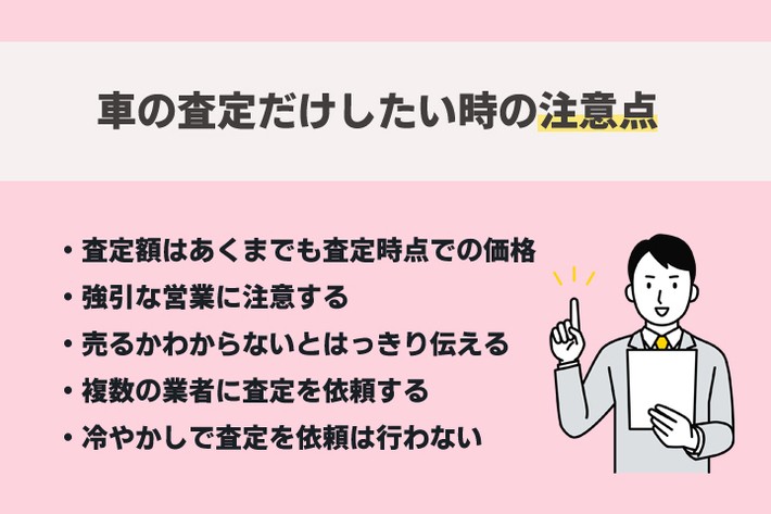 車の査定だけしたい場合の注意点やコツについて解説してきました。