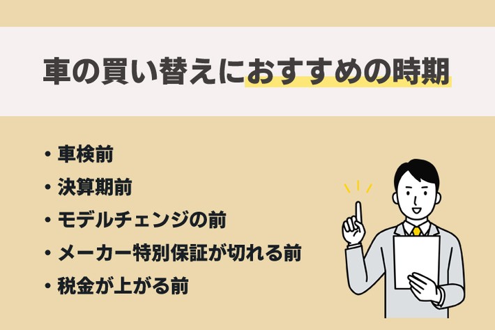 目的の車がお得な価格で購入できる可能性が高まるため、決算期前は買い替えに適したタイミングといえるでしょう。