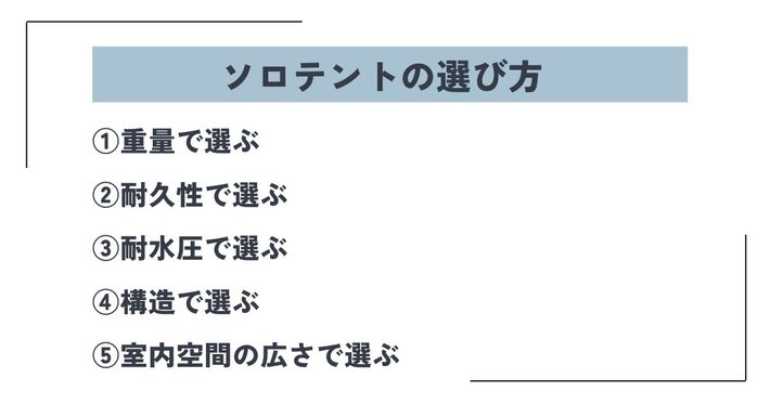 ソロテントを選ぶ際には、様々な要素を考慮する必要があります。