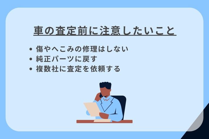 純正パーツを社外パーツに付け替えている場合、査定前に戻しておくことをおすすめします。純正パーツは品質が高く、後付けができないため、中古車市場でも人気があります。戻したほうが、プラス査定につながる可能性が高いでしょう。