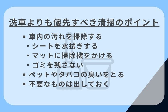 ここでは、洗車よりも優先したい車内清掃のポイントを解説します。