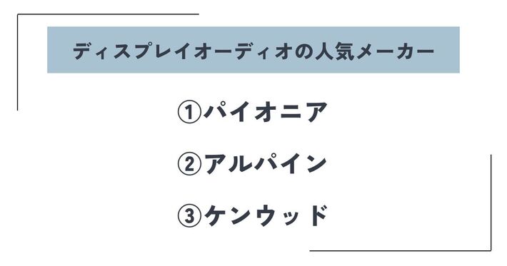 ディスプレイオーディオを提供するメーカーの中でも人気なのは以下の3つです。
