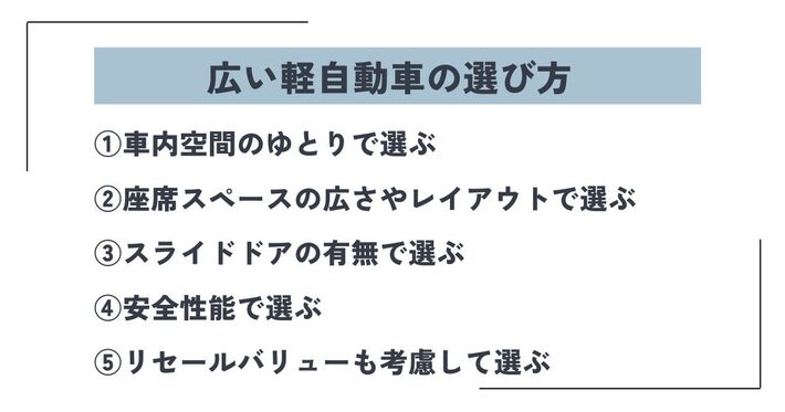 この記事では、ゆったり広い軽自動車のおすすめ車種をランキング形式で紹介します。