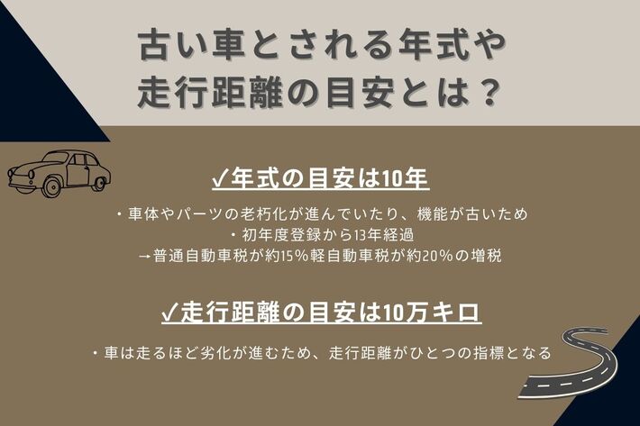 古い車とされる年式や走行距離の目安を確認し、売却のタイミングを決める参考にしましょう。