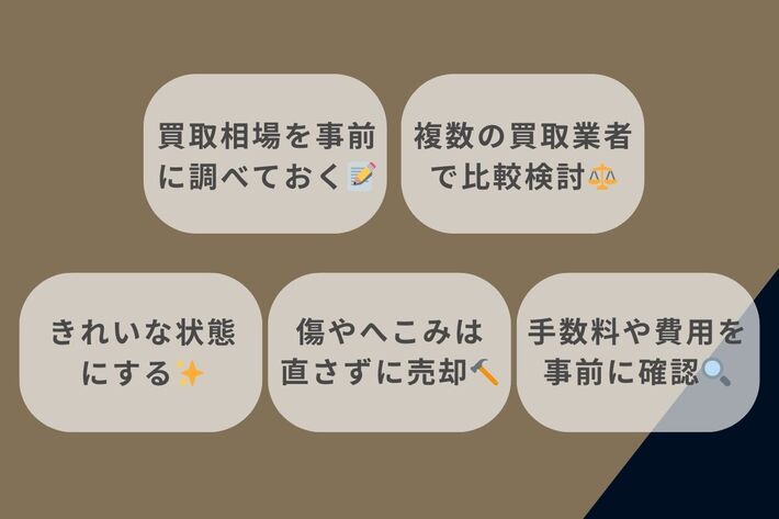 コツの1つ目は、買取相場を事前に調べておくことです。相場を知っておくことで、買い叩かれる可能性を軽減できます。
