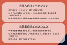 個人向けオークションは、広く一般の方が参加できる中古車オークションです。具体的には、ヤフオクに代表されるオークションサイトでの売買が該当します。