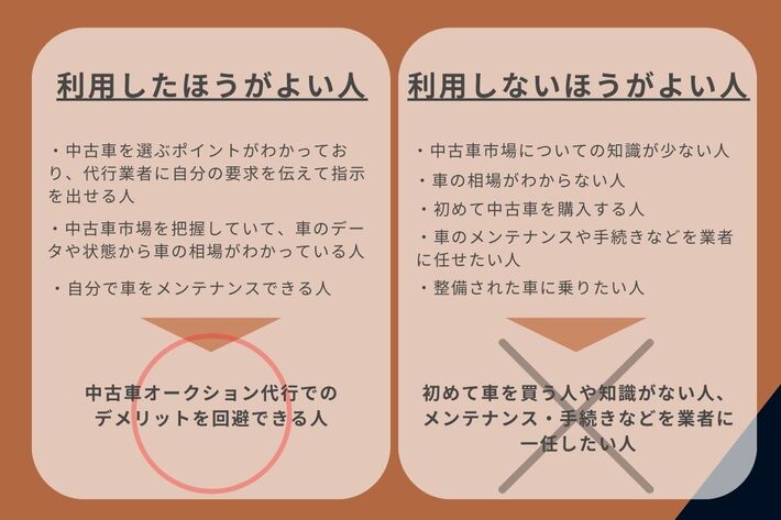 - 中古車オークション代行を利用したほうがよい人・しないほうがよい人