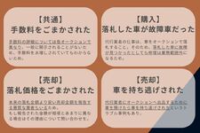 オークションの手数料をごまかされた、というケースがあります。こちらは、購入側・売却側共通の事例です。