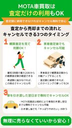 MOTA車買取は、「まずは査定だけ」という利用方法も歓迎しています。「高く売れそうなら売却を検討したい」という需要もあり、もし希望額に満たなかった場合などは無料でキャンセルが可能です。