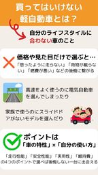 軽自動車にはボディサイズやエンジン出力に制限があるぶん、車種ごとに個性がはっきり分かれます。用途やライフスタイルに合っていない車を選んでしまうと、「買ってはいけない軽自動車」になりかねないのです。