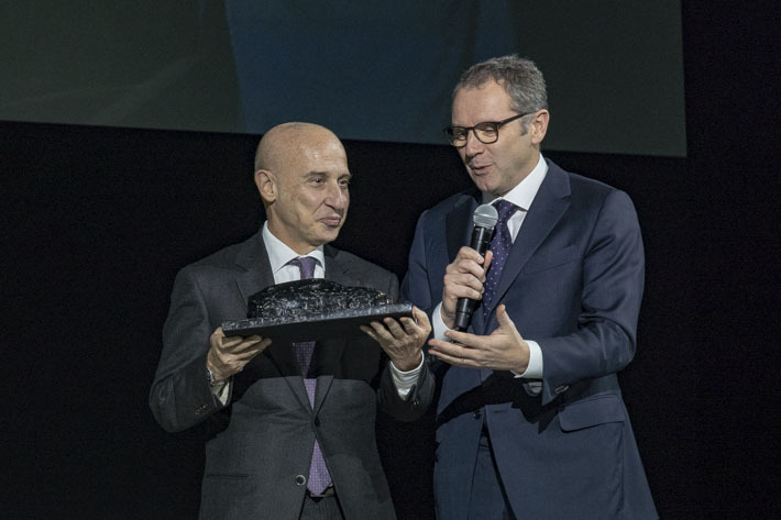 また、本イベントではランボルギーニ CEO ステファノ・ドメニカリ氏から駐日イタリア大使 ジョルジオ・スタレイス氏へ、アヴェンタドールSVJのアジア初披露のお礼として本モデルを模った模型が記念品として渡された。