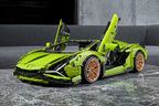 レゴテクニック ランボルギーニ シアンFKP 37は、対象年齢18歳以上、総ピース数は3696個という本格的な大人向けモデルで、価格は44,474円。ランボらしいライムグリーンのボディで、全長60cm、全幅25cm、高さ13cmの迫力ある1/8スケールモデルです。