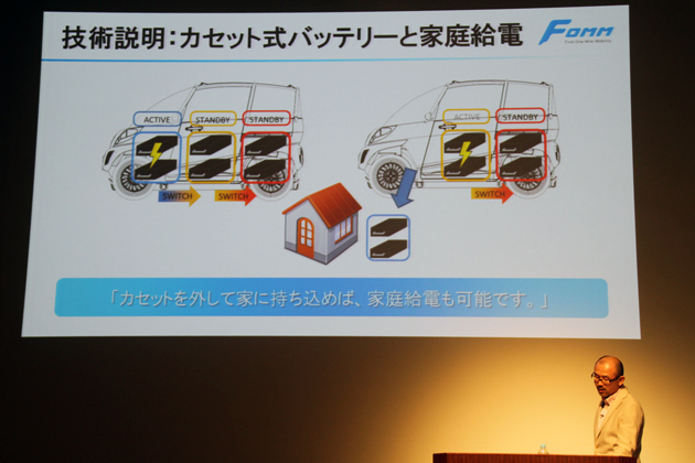 株式会社FOMMの鶴巻 日出夫社長が「FOMM コンセプト One」のプレゼンテーションを行う