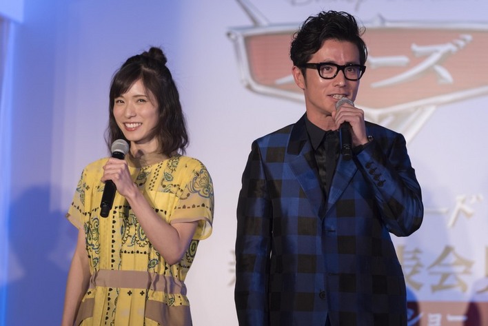 本作で次世代レーサーの「ジャクソン・ストーム」役の日本版声優を務める、人気お笑いコンビ、オリエンタルラジオの藤森慎吾氏と、マックイーンのトレーナーとして奮闘する「クルーズ・ラミレス」の日本版声優を務める、女優の松岡茉優さんが登場した。