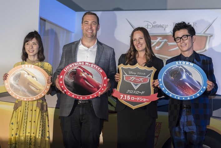 ディズニー ピクサーによるCGアニメーション映画『カーズ』シリーズの最新作『カーズ クロスロード』の新キャラクターを発表する“新車発表会”が6月27日、東京・港区で行われた。日本語吹き替え版の声優を務めたお笑いコンビ「オリエンタルラジオ」の藤森慎吾氏、女優の松岡茉優さん、ブライアン・フィー監督、プロデューサーのアンドレア・ウォーレン氏が出席した。