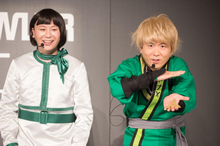 予想外のラピッドシューター発射に焦ったロイド(斎藤)は、記者団に「大丈夫でしたか!?ケガはありませんでしたか?」と言葉をかけ会場を笑いの渦に包んだ。「ケガはありませんでしたか?」の後に「僕は毛がありませんけどね!」が来るぞ!と筆者は咄嗟に思ったのだが、残念ながらその期待は外れてしまった。仕方ない、だって今日は毛があるのだから。