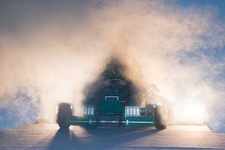 いよいよ「ニンジャ・ナイトクローラー」の実車が登場する時間になると、会場は照明が落ちると同時に大量のスモークで包まれた。スモークの向こうからはゆっくりと「ニンジャ・ナイトクローラー」が登場した。…ん?誰か乗っているではないか。