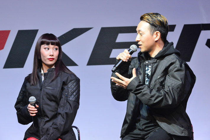 会場ではゲストのDJ・モデル マドモアゼル ユリア氏、プロインラインスケーター 安床 武士氏によるトークショーが催された。トークショーでは実際に試乗した時の感想や、今後カンナムライカーに期待したい点などが語られた。
