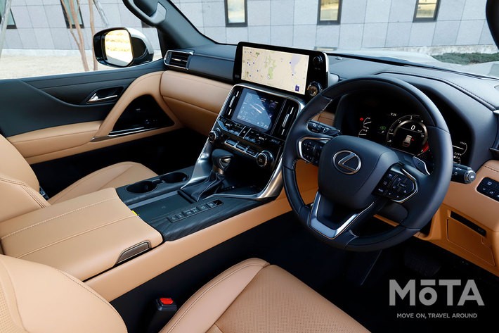 密閉性とでもいおうか。この静謐な感じ、驚くほど上質な室内のプライベート空間のさまはちょっと筆舌に尽くしがたい。正直これは先代LX570の比ではない、“レベチ”ってヤツである。すべての音を吸いこむような、圧倒的な“高級車感”にあふれていて、思わずちょっとヒソヒソ声になってしまうくらいなのだから。