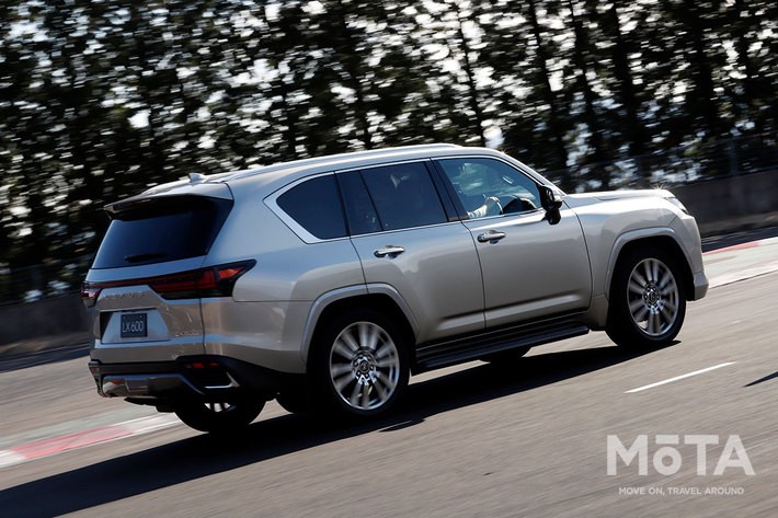 従来型のLX570では“大柄でリッチなフルサイズSUV”というキャラをことさら強調するかのように、超ルーズなハンドリングに超ルーズな揺り返し、加速ももったりとトルクが盛り上がり、ある程度のところからドカンとパワーが出るような、今考えると懐かしい感じにも思える、ジ・アメリカン・フルサイズ!的フィールを持っていた。