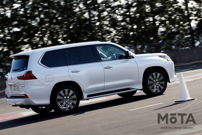 つまり従来型のLX570は、サーキットや山道で小回りを楽しむような、そんなタイプのクルマではなかった。逆に言うとそういうシーンではどんどんクルマが外側に膨らんだり、ハンドルが切り遅れて行ったりするからドライバーはちょっと疲れる。わりと直線番長的なクルマだったかと思う。