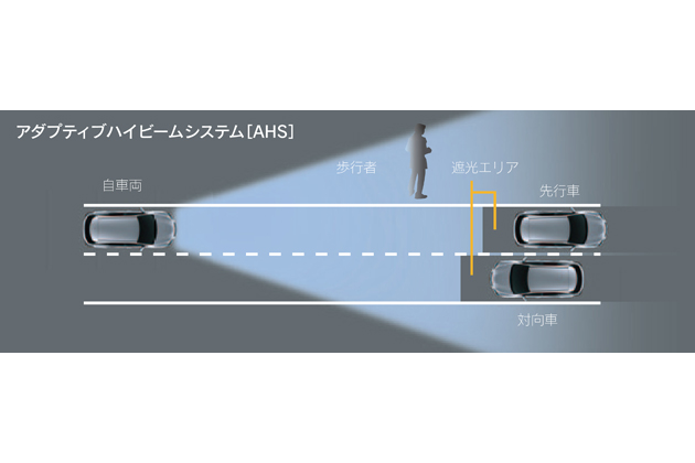 また対向車や先行車を検知してハイ/ロービームを切り替えるオートマチックハイビームを標準装備しているが、前方車両や対向車両に光が当たる部分だけを自動的に遮光することを可能にしたAHS(アダプティブハイビームシステム)も全グレードにオプションで装着することが出来る。