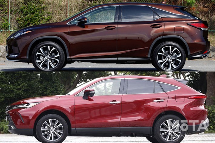 レクサスRXの現行モデルは2015年に4代目として登場。そして現行型の4代目ハリアーは、2020年6月にデビューし1年が経過したばかり。RAV4、北米向けハイランダーに続く、トヨタ最新のGA-Kプラットフォームを使う都会派クロスオーバーモデルである。