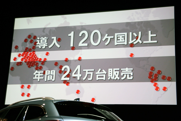 新型アテンザは世界120ヶ国に導入を予定し、グローバルで年間24万台の販売を目標とする。