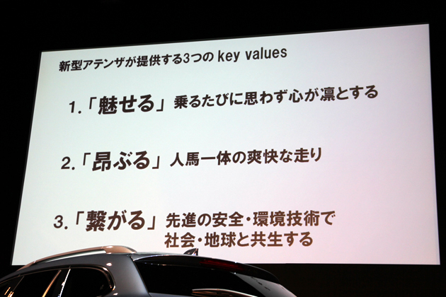 梶山氏が語る新型アテンザの3つのキーバリュー「1.魅せる」「2.昂ぶる」「3.繋がる」