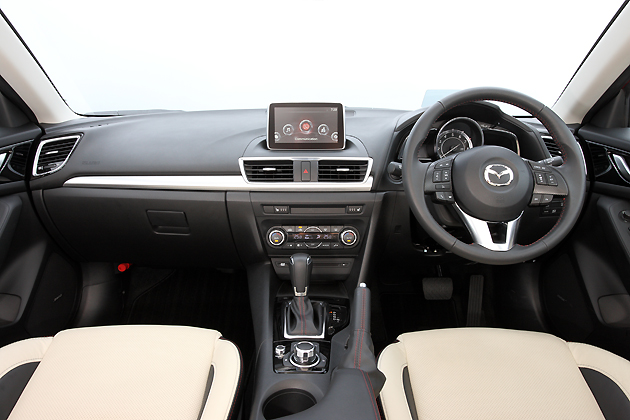 外観デザインはひと目でマツダ車と分かるもの。CX-5やアテンザに採用された五角形のシグネチャーグリルを採用するなど、マツダが“魂動”と呼ぶデザインを採用しているからだ。今のアクセラと比べると格段にダイナミックな感じのデザインである。