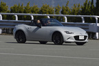 理想のドライビングポジションについて学んだ後は、いよいよコースに出てドライブを開始! まずは用意された歴代ロードスターで、美祢試験場のワインディングコース走行と広場でパイロンを使用した走行を試した。